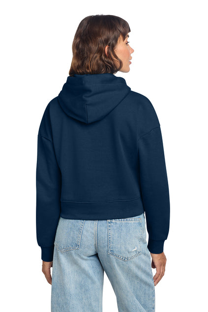An almost crop fit that is super flattering! Runs true to size, but is defintely shorter and lighter than your normal hood. A great alternative to the oversized hoods we offer for parents!